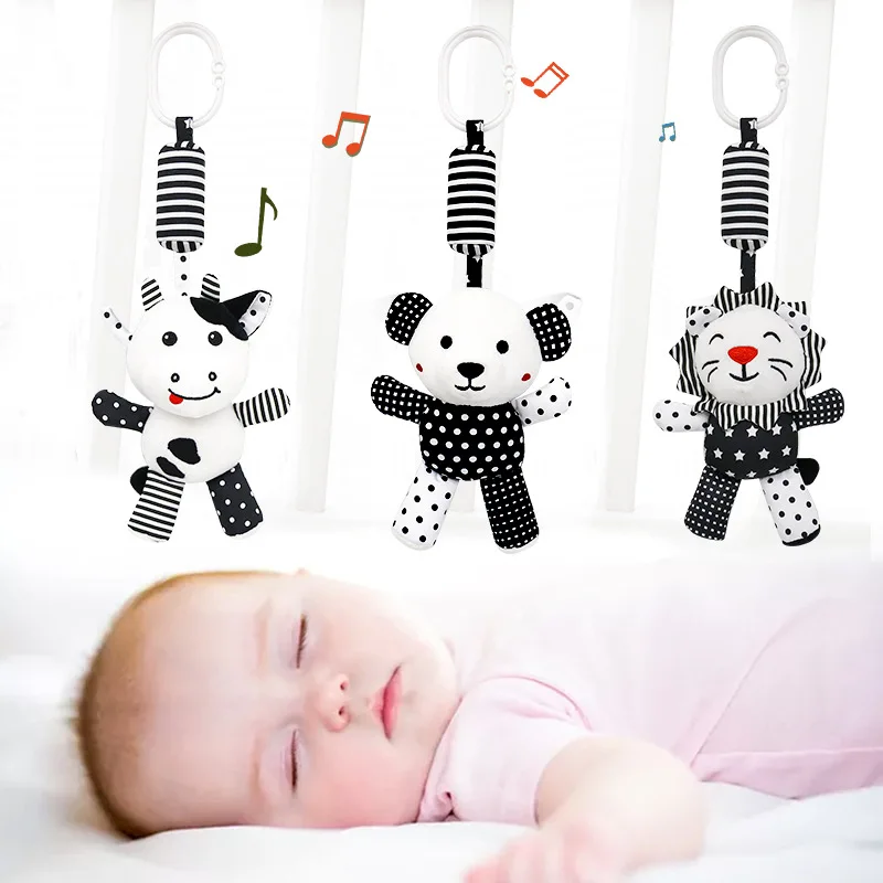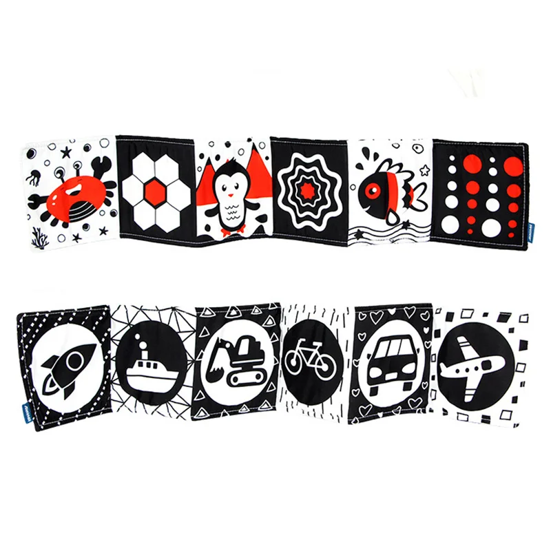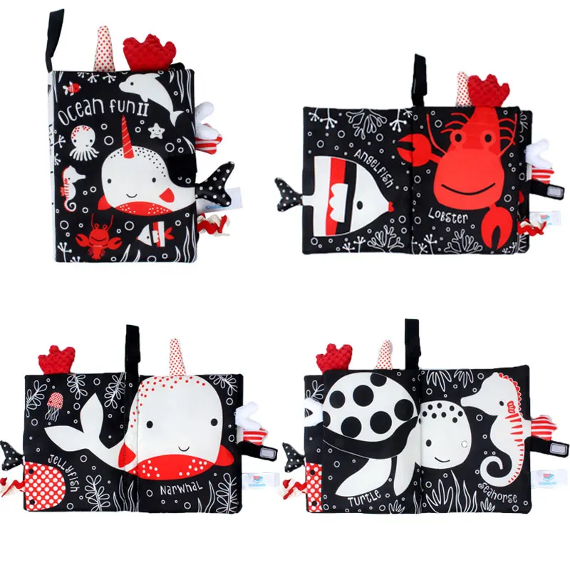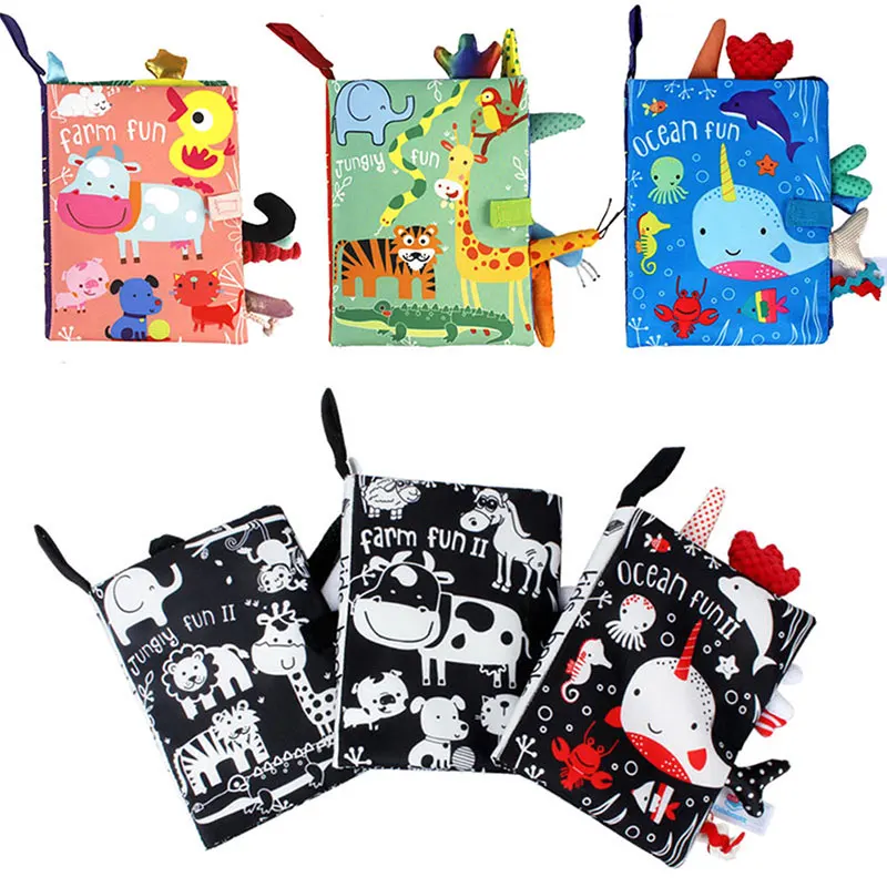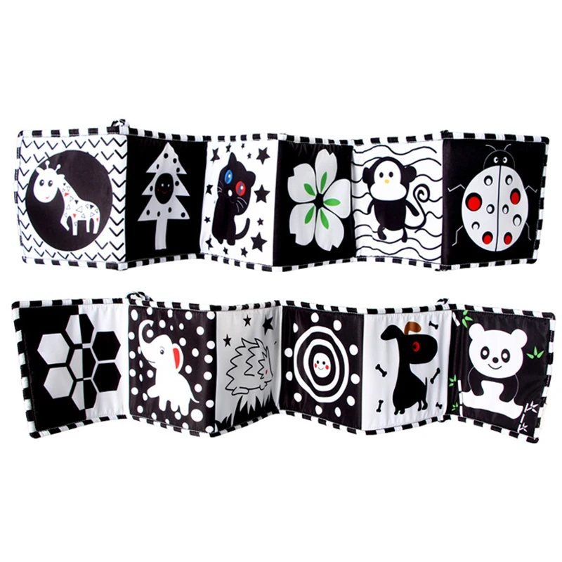 Brinquedos sensoriais para bebês recém-nascidos, livro educacional para berço, preto e branco, brinquedos para bebês, livro de pano animal, brinquedos para bebês de 0 a 12 meses